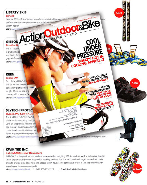 Airhead Inside Out Wakeboard reviewed in July Issue of Action Outdoor & Bike Magazine. Nothing but great-wake shredding things to say about this 6 fin thruster setup!