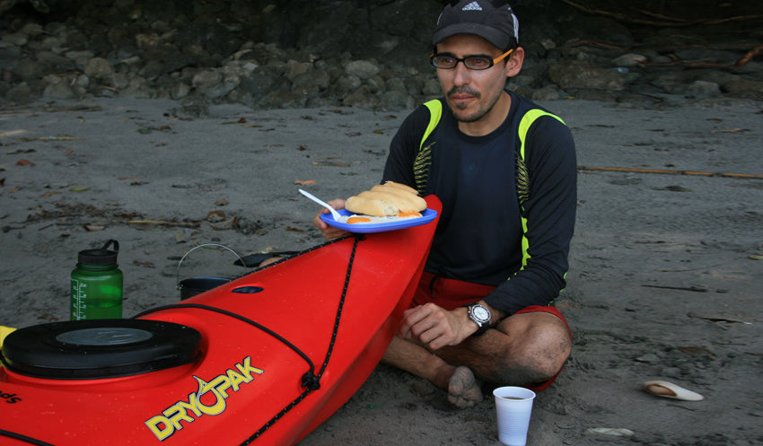 The sun was coming up behind the Irazu Volcano. The smell of fresh baked bread lead us to the corner store where we got a 3 feet baguette one could barely hold on its naked hand as it was coming right out of the oven. Half gallon orange juice, 4 eggs (sold by the unit) and a large bottle of water. It was 4:20 a.m. and with the kayaks on top of the car we were ready to hit the road leaving capital city of San Jose before the morning traffic turns it into pandemonium.
