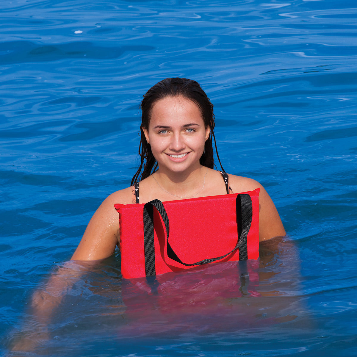 This personal water flotation device for swimming is made from soft nylon that feels comfortable against your skin. Inside, a lightweight Poly-E flotation device ensures your safety. Cove Saddle has carrying handles that make it easy to transport when you’re moving from the shore to the water.