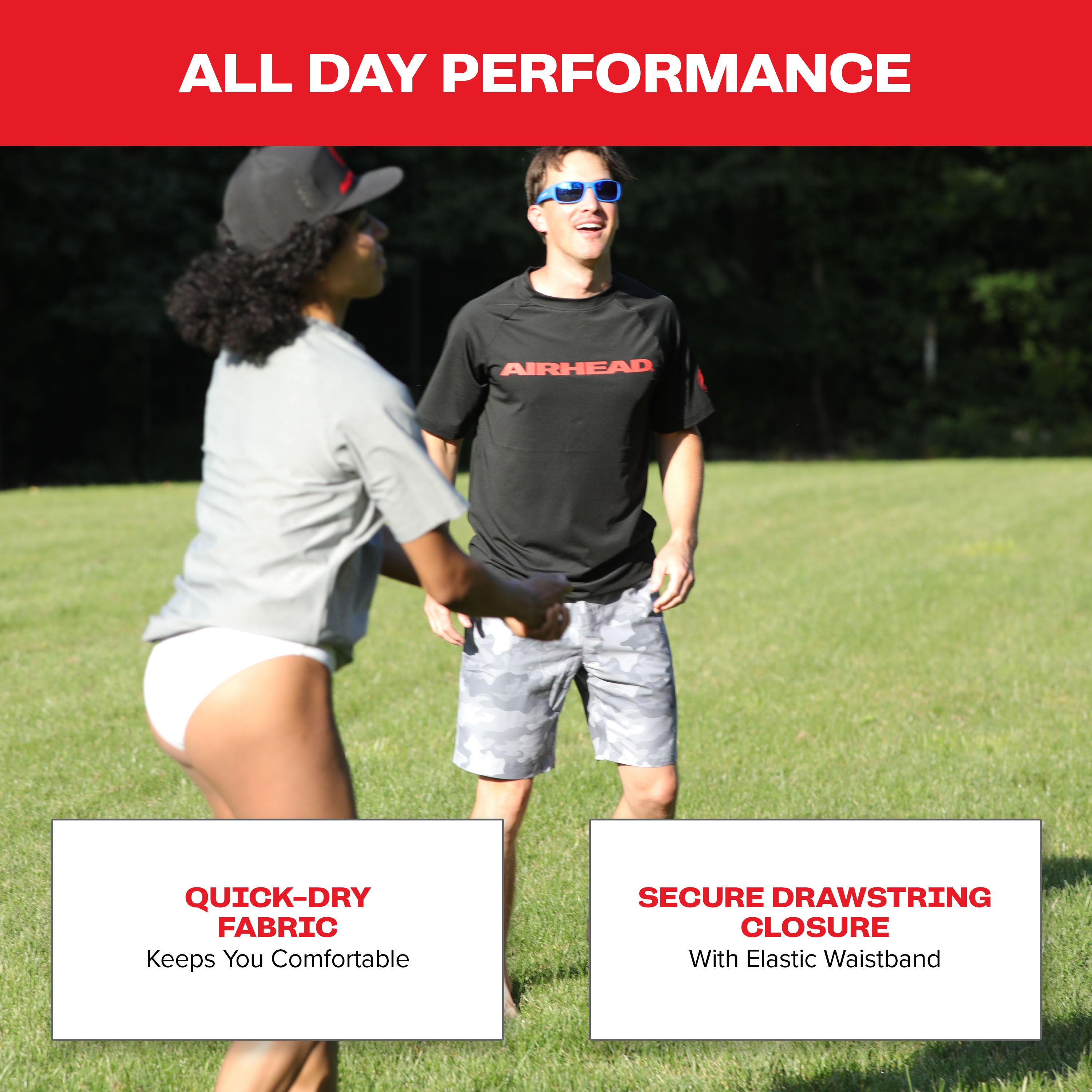 Water-repellent and quick-drying performance for reduced water retention.