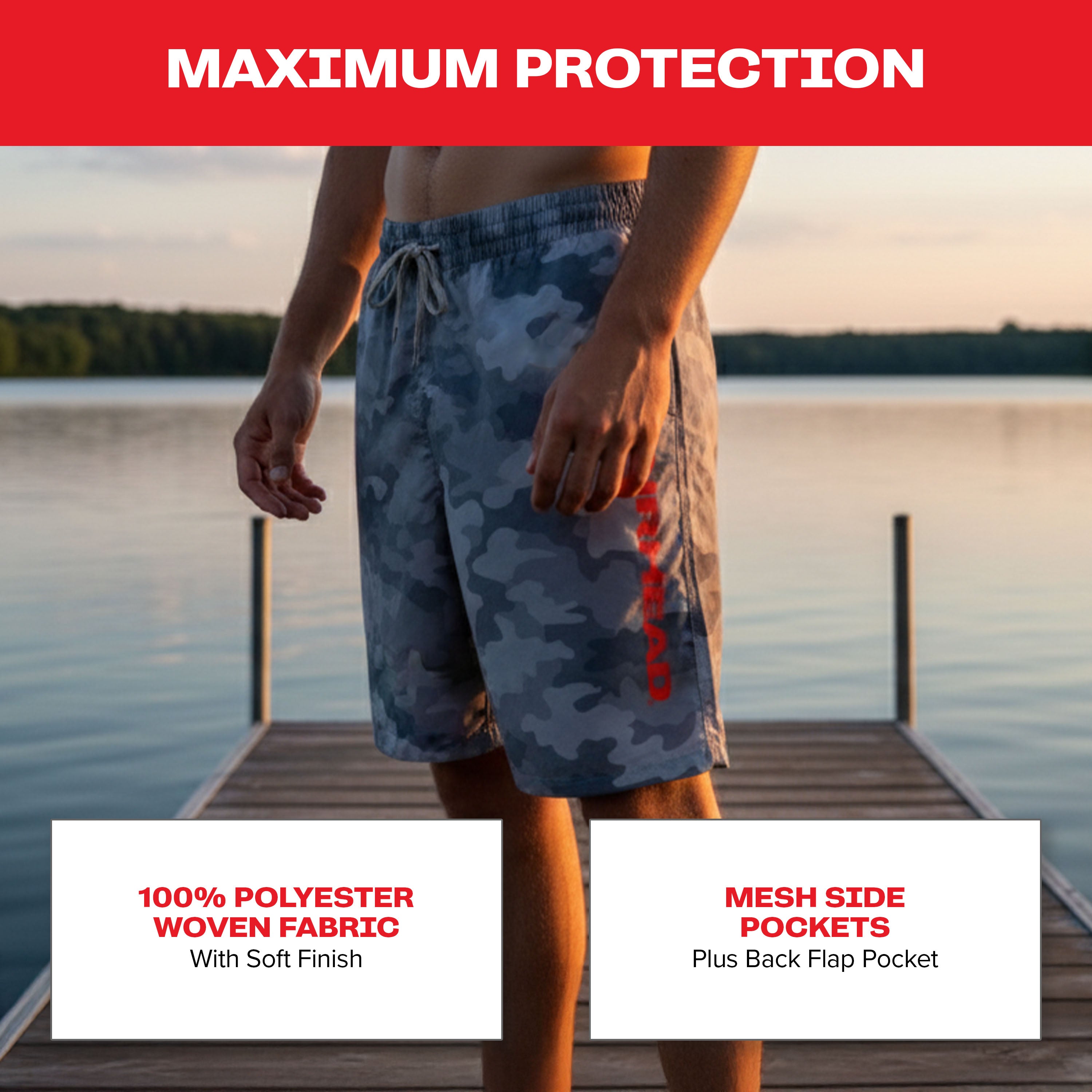 These durable Board Shorts are designed for action in and out of the water. They have a Polyester woven fabric with a soft finish. The shorts feature high-performance quick-dry and water-repellent properties. Closure is secured with a polyester drawstring and elastic waistband. Functionality is enhanced by 100% polyester mesh side pockets and a back flap pocket.