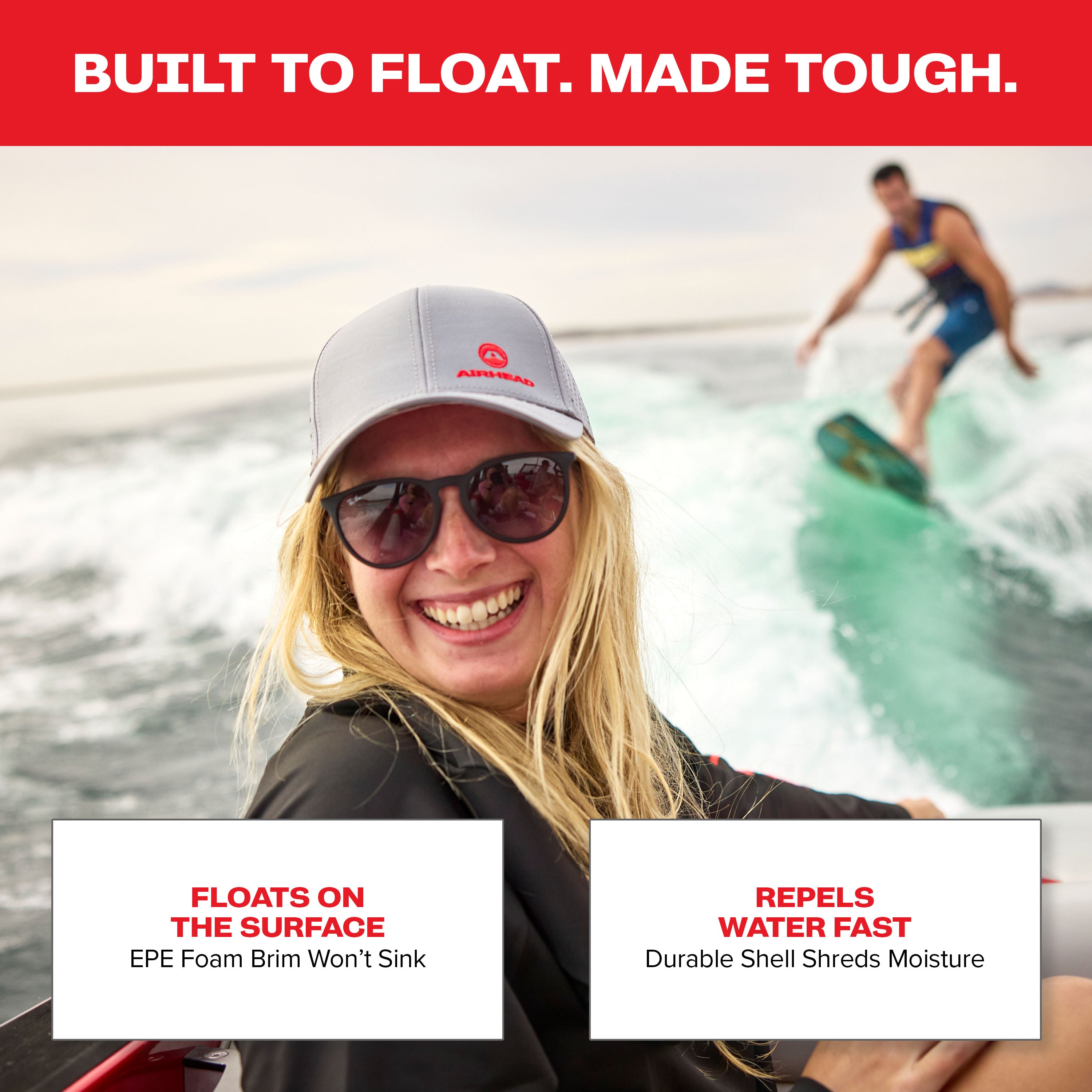 The Floating Hat is built for the water, featuring a specialized floatable EPE foam brim core that ensures the hat stays on the surface. The shell is made of 100% Polyester woven fabric with a water-repellent finish and offers superior sun protection with a UPF 50+ rating. The interior is lined with 100% Polyester mesh for breathability, and a secure, adjustable snapback closure provides a custom, stay-put fit.