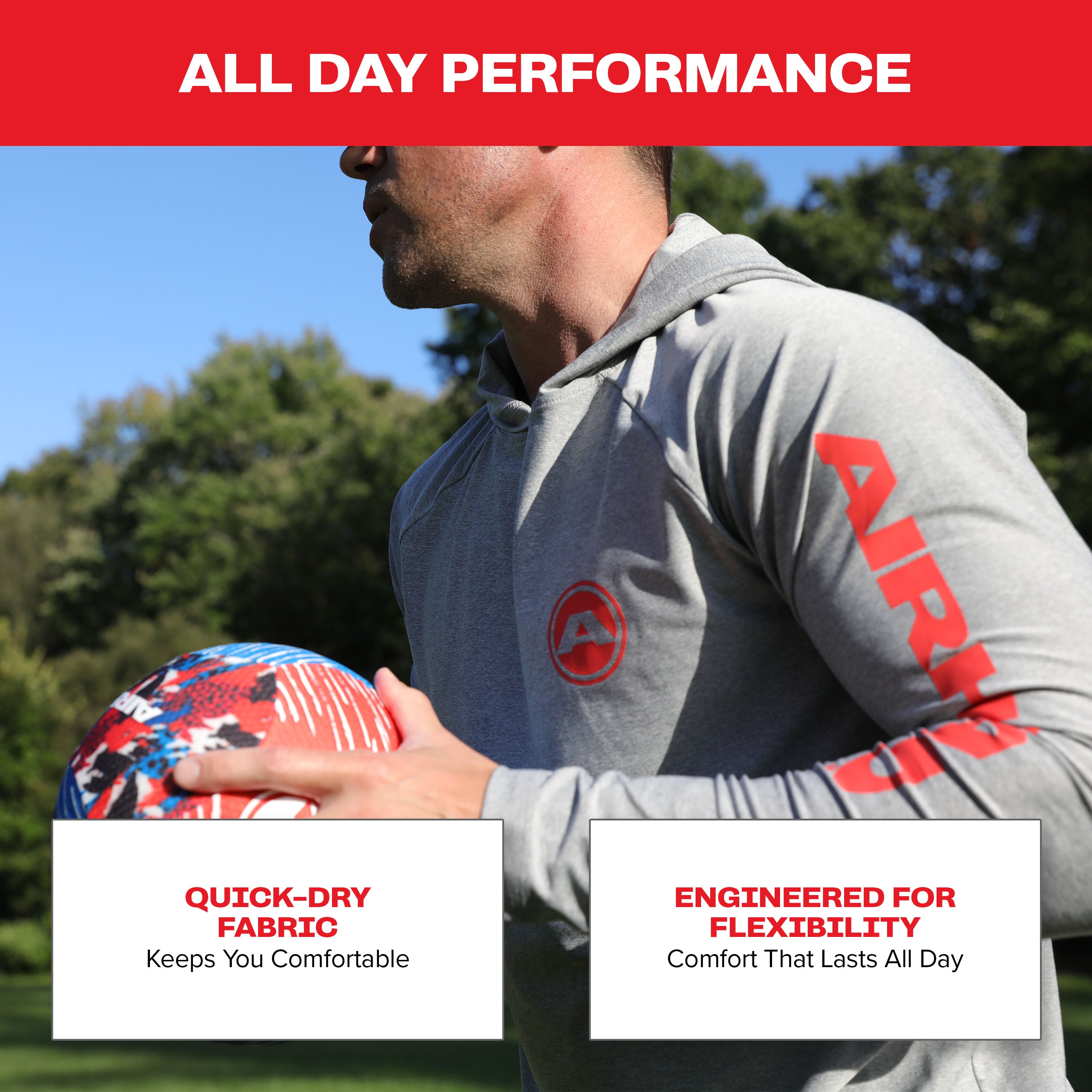Quick-dry, breathable construction for all-day comfort.