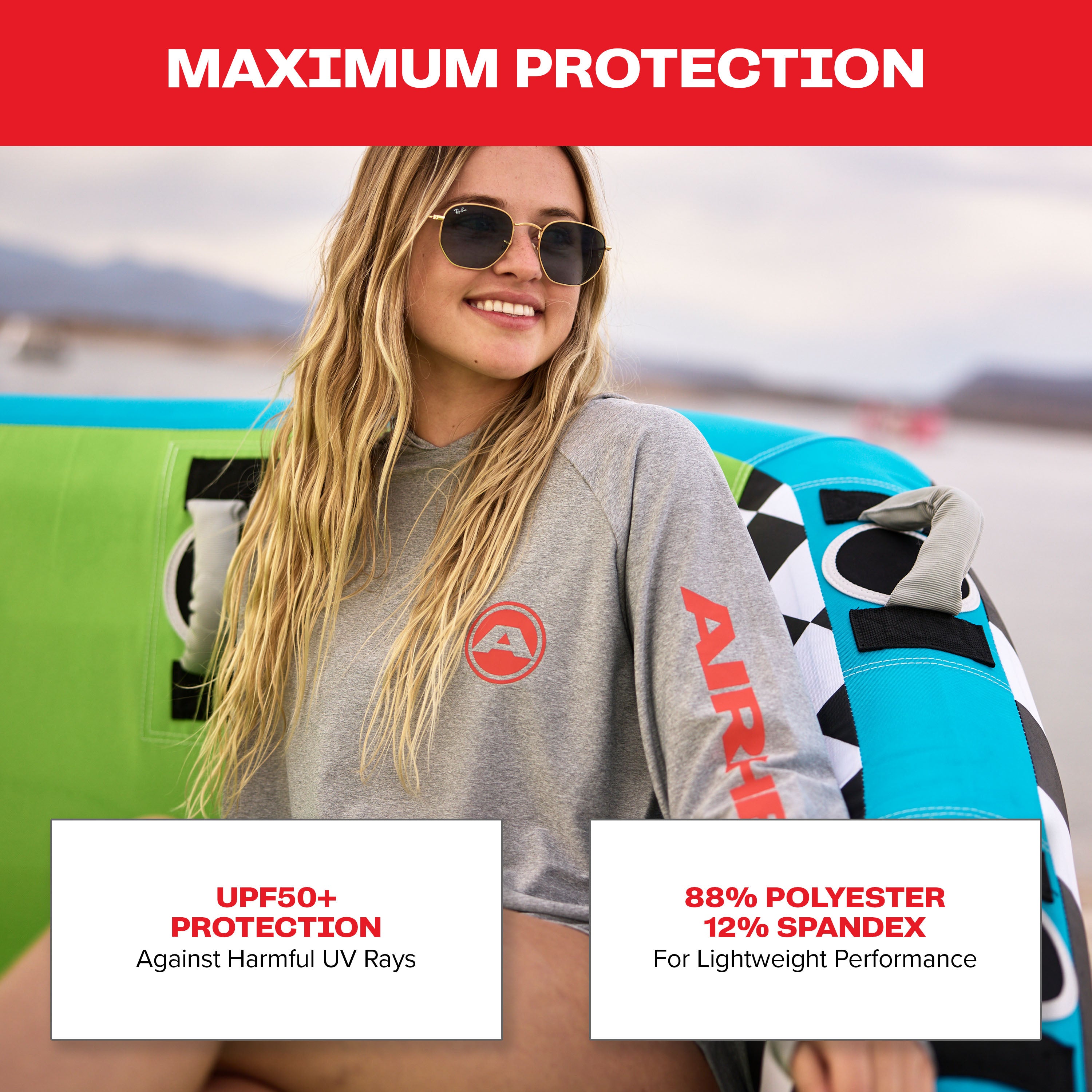 Provides UPF 50+ protection and enhanced stretch.